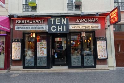 Le restaurant Ten Chi occupe un espace moderne au 15-17 rue du Maine, servant des plats japonais traditionnels avec des ingrédients frais.
