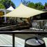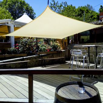 La terrasse exterieure est entouree de tilleuls centenaires qui offrent de l'ombre et rendent l'experience de diner en plein air particuliere. De cet endroit, on peut voir a travers la vallee du Rhone, et par temps clair la vue s'etend vers les Alpes.