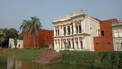 La Fondation d'Art Populaire et d'Artisanat du Bangladesh occupe un bâtiment colonial avec des ornements en plâtre et des éléments architecturaux traditionnels.