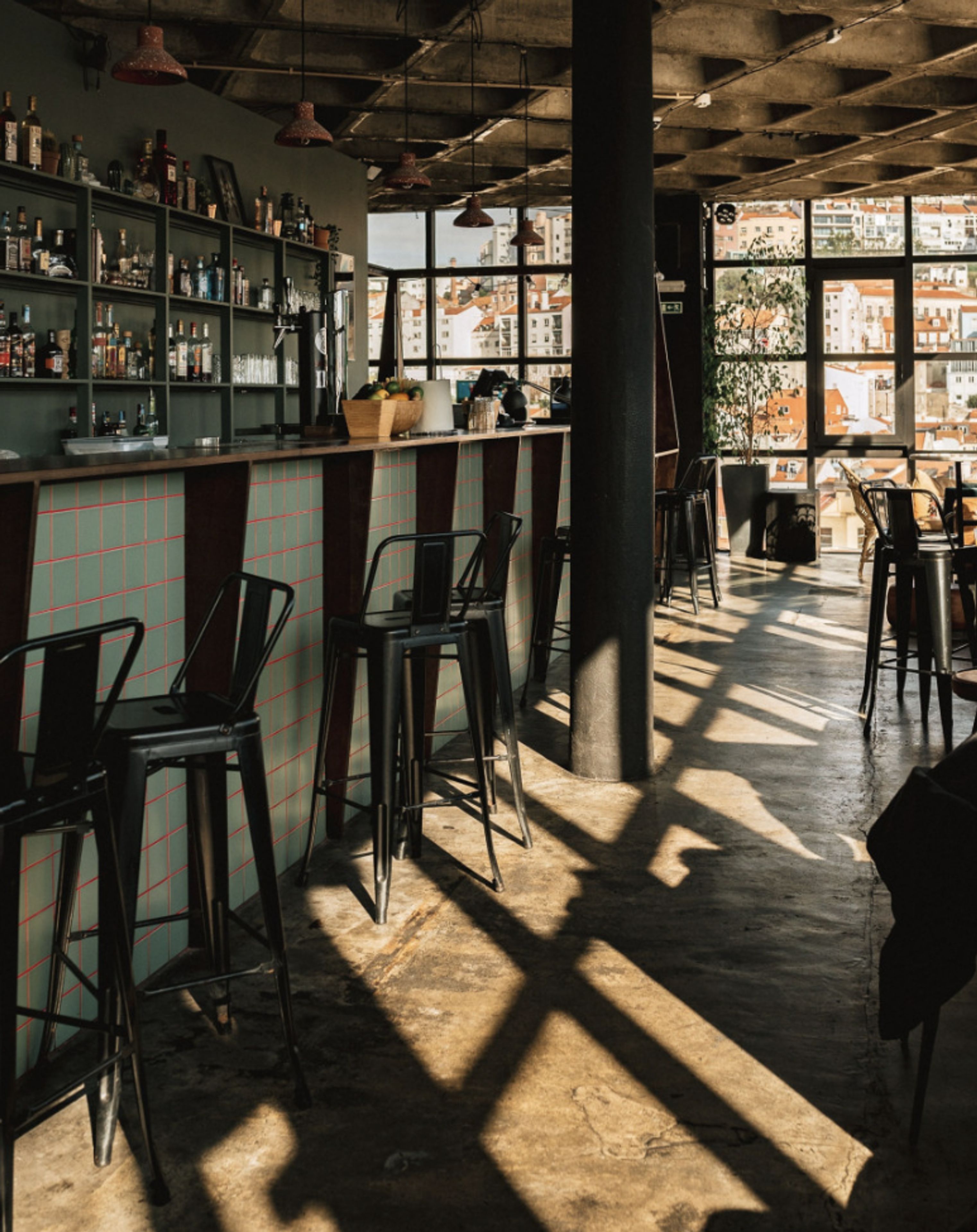 L'établissement occupe le sixième étage du Centro Comercial Martim Moniz, avec un espace intérieur et une terrasse extérieure surplombant le Château São Jorge.