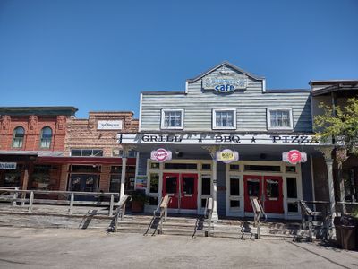 L'espace comprend plusieurs zones thématiques distinctes qui transportent les clients dans différentes époques pendant leur repas américain traditionnel.