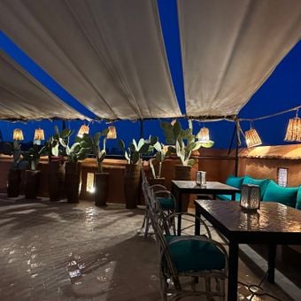 Restaurants établis dans des riads et palais de Marrakech offrant des plats marocains traditionnels et des créations culinaires internationales. Ces adresses présentent la gastronomie locale dans des bâtiments historiques de la médina, avec des terrasses donnant sur la ville et des salles décorées de mosaïques traditionnelles. La carte inclut des tajines, couscous et pastillas ainsi que des spécialités méditerranéennes, asiatiques et européennes.