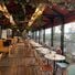 Volfoni est un restaurant italien a Boulogne-Billancourt qui sert des plats traditionnels dans un cadre moderne avec des murs en brique apparente et des surfaces en marbre Carrara. L'interieur parait lumineux et ouvert, avec de grandes fenetres et des tables bien disposees.