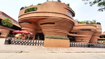 Le musée s'étend sur 3,000 mètres carrés répartis sur plusieurs étages, avec sept bâtiments en forme d'entonnoir interconnectés aux motifs sculptés multicouches.