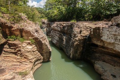 Los Cajones de Chame présente des formations rocheuses sculptées par la rivière Chame, créant huit bassins reliés par des passages naturels en pierre.