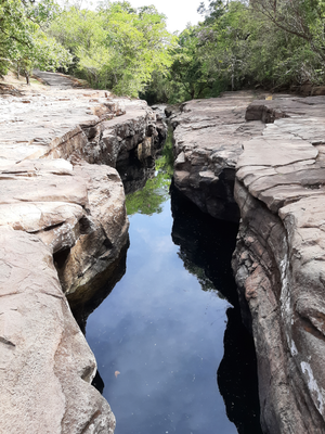 La rivière Estí traverse des formations rocheuses créant des bassins profonds le long d'un canyon naturel de 40 mètres.