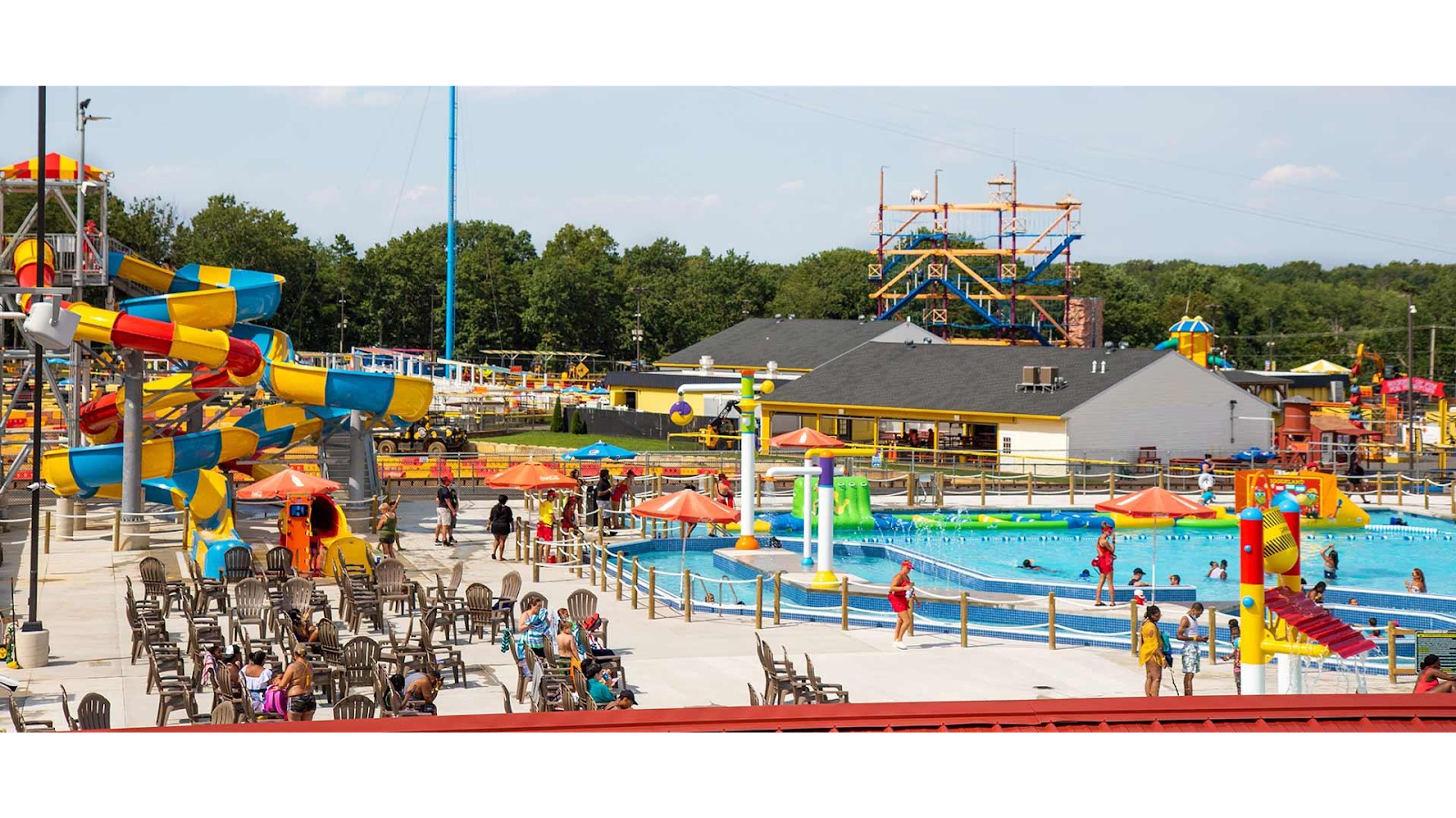La zone Water Main associe les thèmes de la construction aux attractions aquatiques dans des piscines inspirées par les machines de chantier.