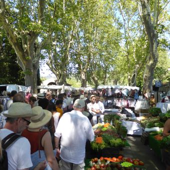 Le Marché de Lourmarin s'étend sur le Boulevard du Rayol et la Place Henri Barthelemy avec 150 étals proposant des produits frais et artisanaux.