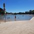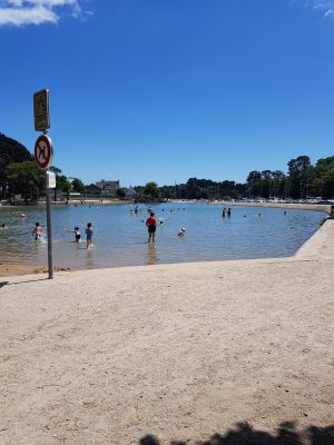 La plage dispose d'une piscine naturelle d'eau de mer alimentée par les mouvements des marées, créant un environnement contrôlé pour la baignade.