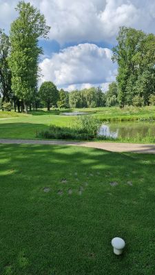 Le parcours de golf occupe les terres d'un ancien domaine château, avec des arbres matures et des plans d'eau qui définissent le tracé actuel.