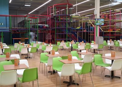 Les enfants peuvent profiter d'options de jeu illimitées dans des structures de six mètres de hauteur sous la surveillance des parents depuis des zones dédiées.