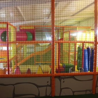 Le centre de loisirs intérieur comprend 650 mètres carrés avec des structures de jeux, toboggans, piscines à balles et équipements d'escalade.