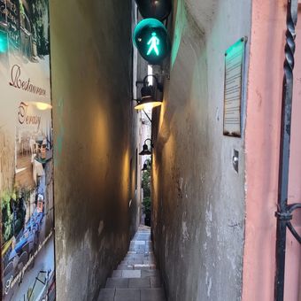 La rue la plus étroite de Prague est un passage avec escaliers dans Praha 1, reliant deux petites rues dans le secteur de la Vieille Ville. À son point le plus resserré, le couloir est si étroit que la plupart des gens doivent se mettre de côté pour passer.