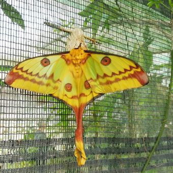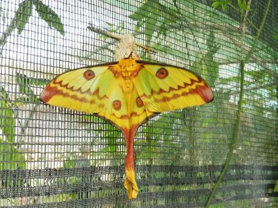 L'établissement comprend une serre de 800 mètres carrés où des centaines de papillons tropicaux d'Asie, d'Afrique et d'Amérique volent en liberté.