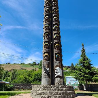 Cette structure en cèdre détient les records de la plus grande sculpture à la tronçonneuse de visages humains et du plus grand monument de football existant.