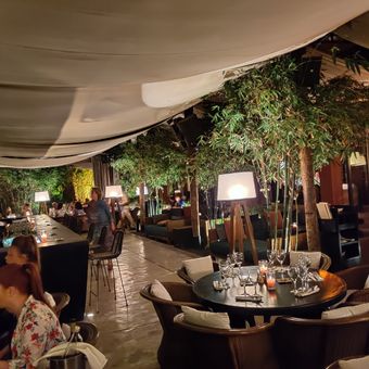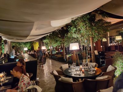 Le restaurant dispose d'une pergola rafraîchie par brumisation pendant les mois d'été et se transforme en lieu nocturne avec spectacles musicaux après le service.
