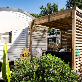 Le Mas de la Plage est un camping en bord de mer réparti dans une forêt de pins avec 152 emplacements et 91 hébergements locatifs situés près de la mer Méditerranée. Les installations comprennent un complexe de piscines avec toboggans aquatiques, une location d'équipements sportifs, un service de blanchisserie et un mini-supermarché pour le confort des clients.
