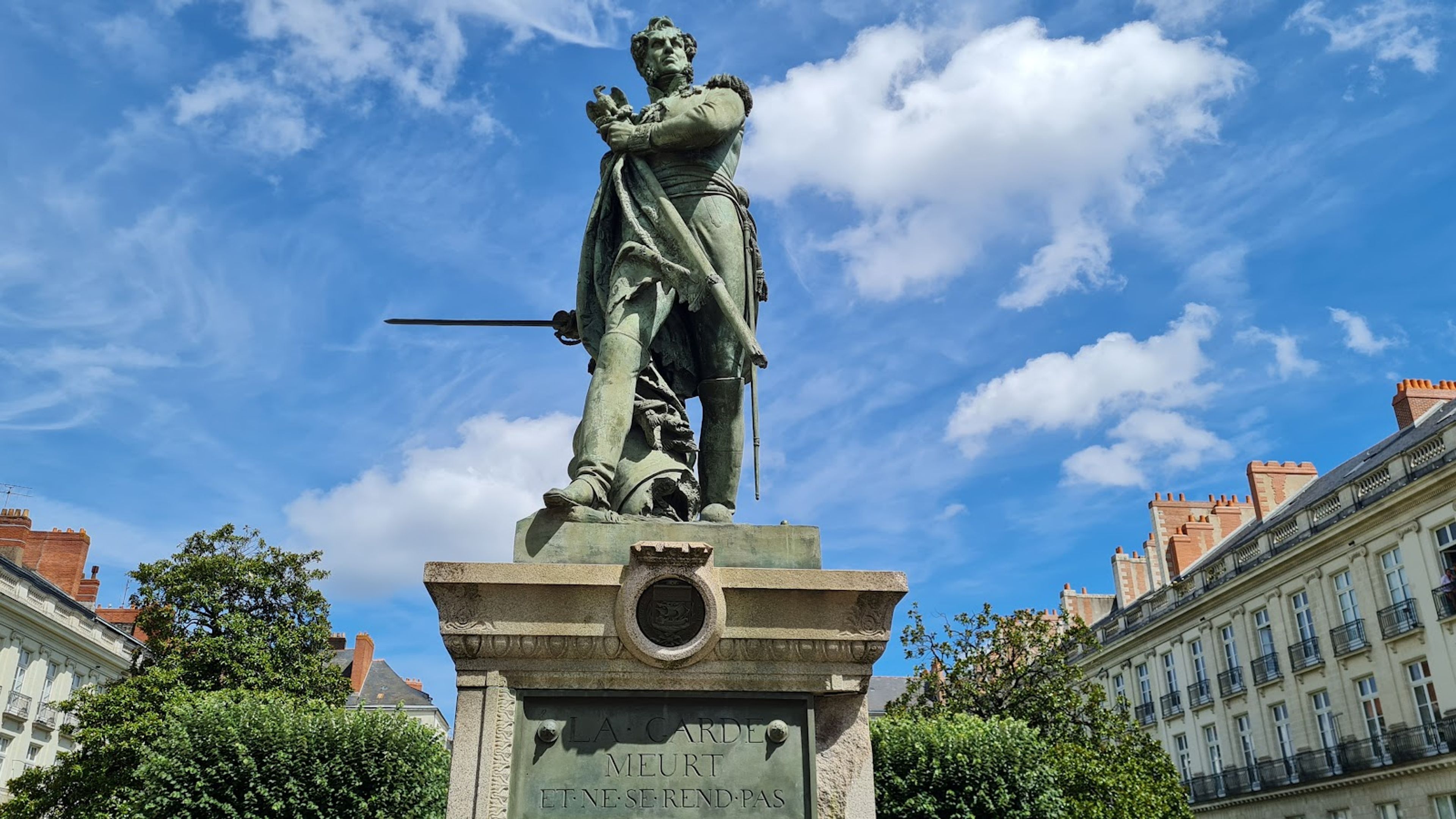 La statue symbolise la détermination militaire française à travers la célèbre déclaration du Général Cambronne de mourir plutôt que de se rendre.