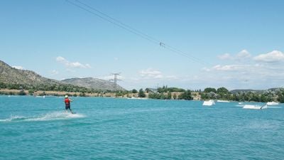 Le site dispose d'un système de câbles de 700 mètres avec cinq pylônes, permettant le kneeboard, le ski nautique et le wakeboard sur le Lac de Peyrolles.
