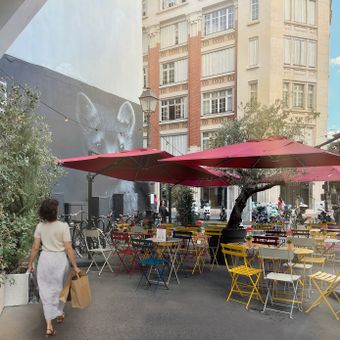 Le cafe attire un melange varié de residents, de professionnels de la mode et de visiteurs, reflétant le caractere multiculturel du quartier. Cette diversité crée une ambiance ou les conversations et les rencontres croisent le quotidien du lieu.