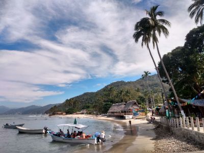 Les visiteurs peuvent accéder à la plage en taxi nautique depuis Boca de Tomatlán en 20 minutes ou depuis la jetée Los Muertos en 45 minutes.