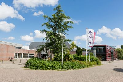 Le Sportcentrum Vreeloo comprend deux salles de sport interconnectées et une piscine de 25 mètres avec un fond réglable.