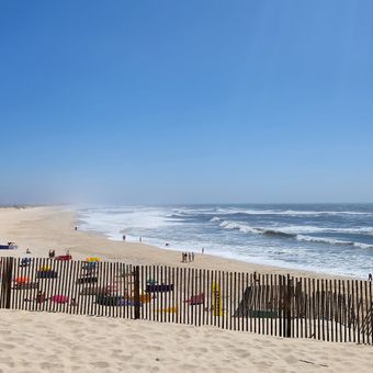 Le littoral sablonneux s'étend sur trois kilomètres le long de la côte atlantique, bordé de dunes naturelles couvertes de végétation.