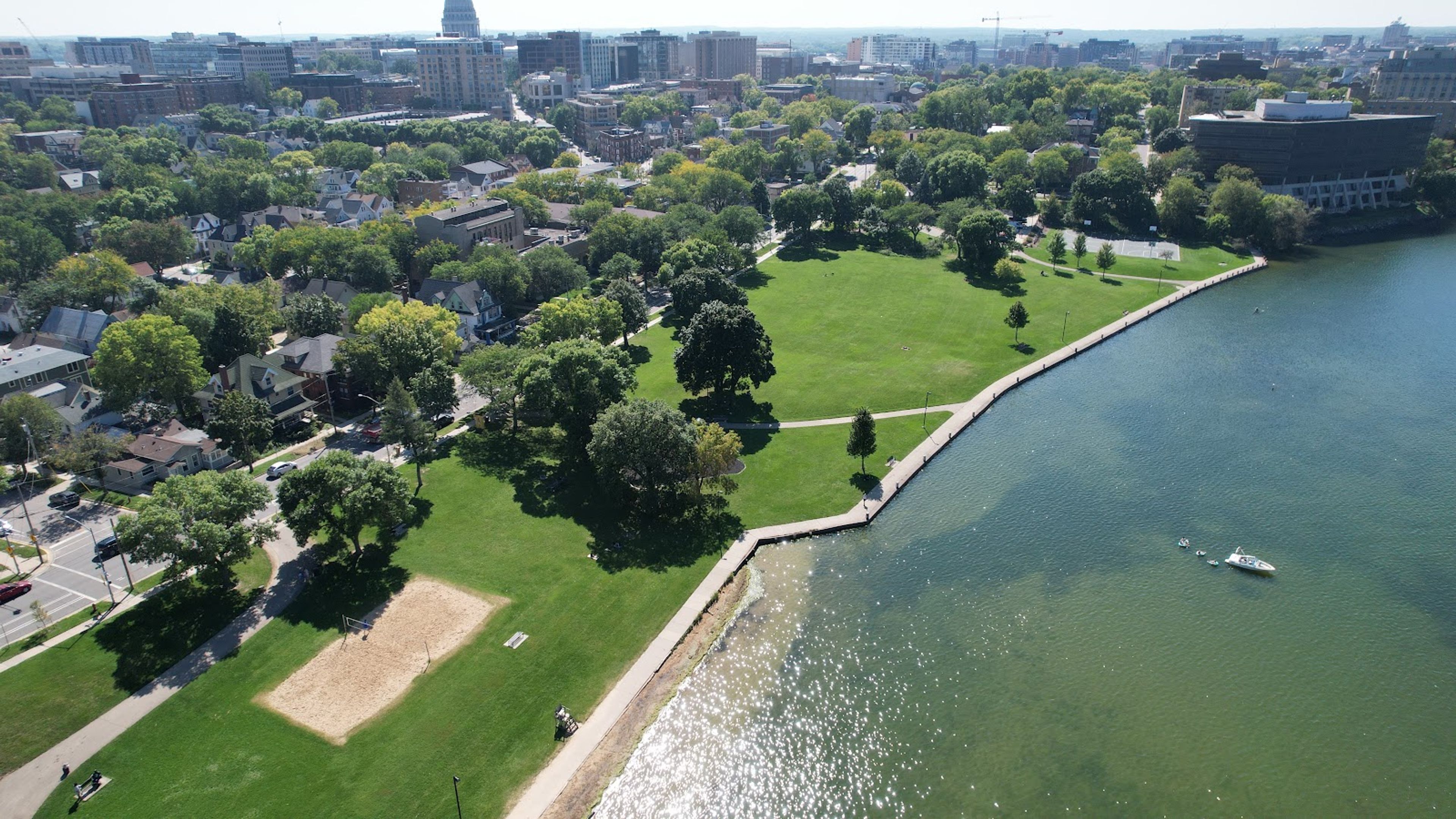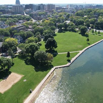 La plage James Madison s'étend le long du lac Mendota, offrant une zone sablonneuse pour la baignade et les activités récréatives.