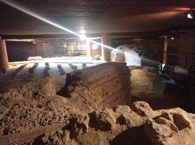 Le complexe thermal romain s'étend sur 2500 mètres carrés sous l'École des Beaux-Arts, avec des fondations de salles octogonales et systèmes de chauffage.