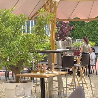 Le personnel du restaurant porte des tenues de jardiniers, reflétant l'héritage agricole régional tout en servant des plats préparés avec des produits du Limousin.
