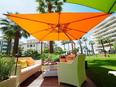 Le Restaurant Le Park 45 présente un espace de restauration au-dessus du Boulevard de la Croisette avec des vues directes sur la Mer Méditerranée.