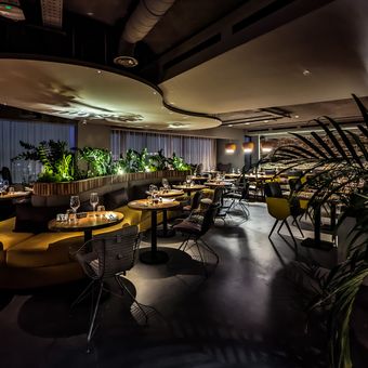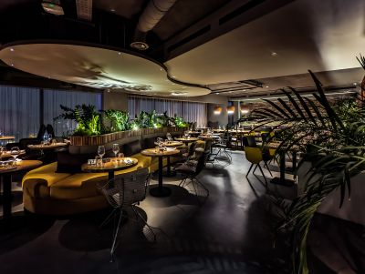 LaÔ Marrakech s'étend sur deux niveaux avec un mobilier contemporain, proposant une cuisine française, marocaine et asiatique.