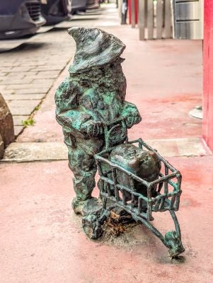 Krasnale z Gildii Kupieckiej, Statue de nain dans la rue Powstańców Śląskich, Wrocław, Pologne.