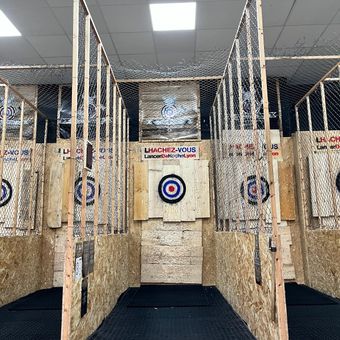 Cet établissement sportif intérieur dispose de sept pistes sécurisées pour le lancer de hache, chacune pouvant accueillir jusqu'à trois participants.