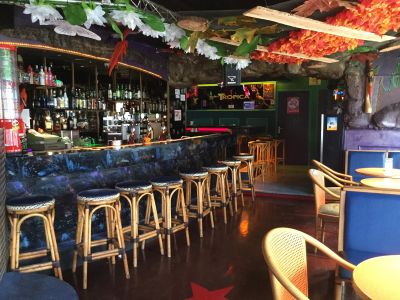 Salon Tropica réunit un espace karaoké et un bar, équipé de matériel audio professionnel et de plusieurs écrans répartis dans l'établissement.
