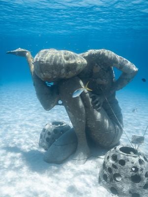 Cette sculpture sous-marine massive représente une jeune fille bahaméenne soutenant le plafond de l'océan, mesurant cinq mètres de haut et pesant plus de soixante tonnes sous la surface.