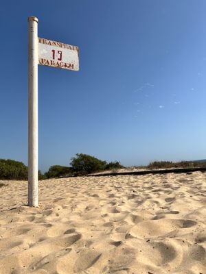 Cette plage s'étend sur de vastes étendues de sable doré bordées par des dunes naturelles et des formations de grès qui créent un environnement isolé propice à la pratique du naturisme en toute liberté.
