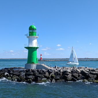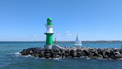 Accessible depuis Rostock via Warnemünde, le phare peut être observé lors de promenades sur la jetée ouest de 550 mètres de long, avec des points d'observation protégés du vent pour admirer le trafic maritime et les paysages de la Baltique.