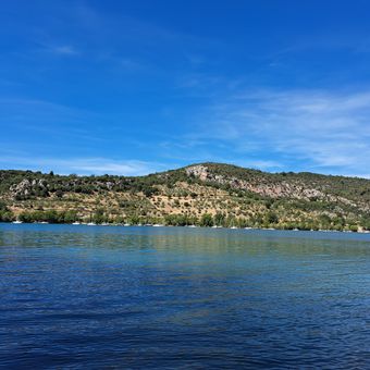 Plage de Bauduen est une plage au bord du Lac de Sainte-Croix en Var, entourée de collines vertes et de végétation méditerranéenne. La plage est composée de galets doux et de rochers arrondis avec une eau peu profonde, idéale pour nager et pratiquer des activités nautiques comme le paddle et le pédalo.