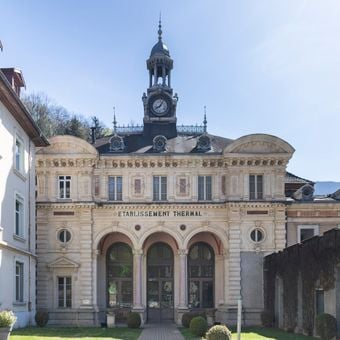 Le Centre Thermal Thérapeutique d'Uriage est un centre de bains thermaux à Saint-Martin-d'Uriage proposant des traitements à base d'eau minérale dans des espaces calmes. Les installations offrent des cures thermales thérapeutiques, de l'hydrothérapie, des soins esthétiques et des massages, avec un bâtiment au design simple axé sur le confort et la détente.