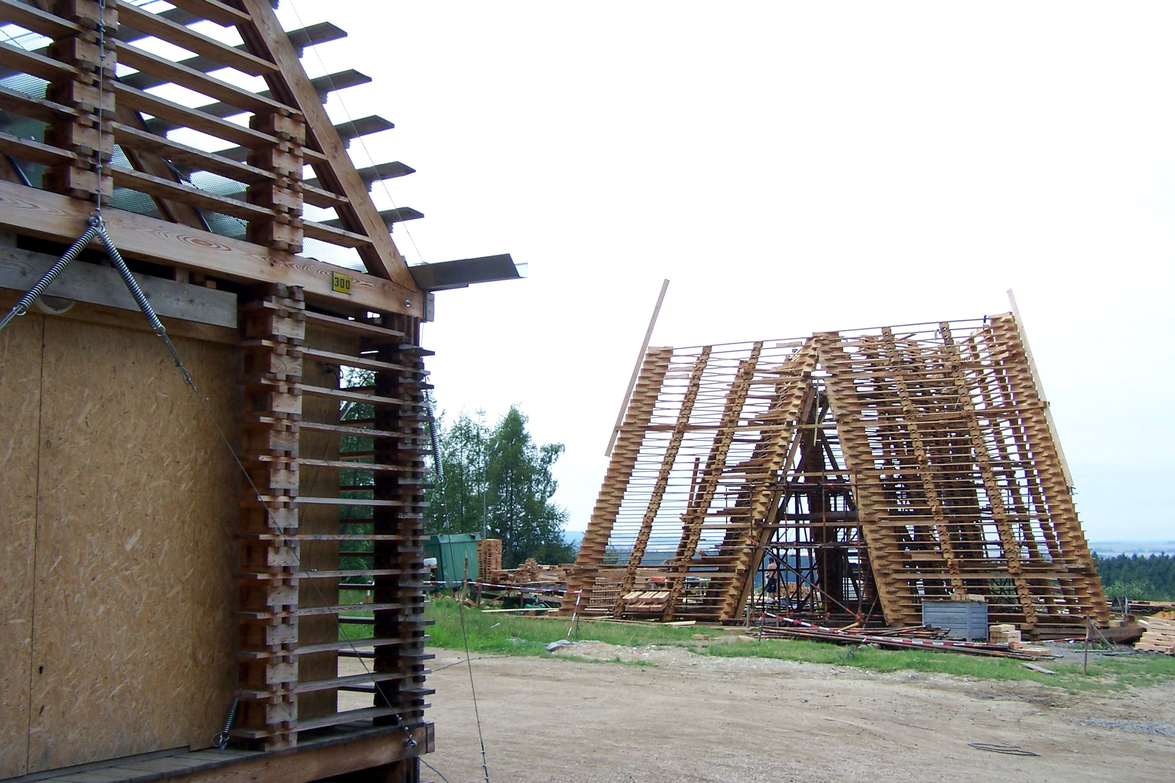 Construite avec 41.3 mètres cubes de bois de mélèze, la tour intègre des câbles d'acier qui ajustent leur tension toutes les trente minutes selon l'humidité.