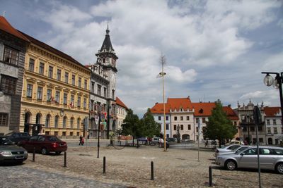 La place centrale de Prachatice présente des bâtiments Renaissance ornés d'art sgraffite et de façades peintes datant du XVIe siècle.