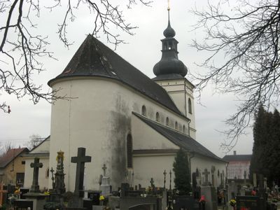 Une fresque au plafond à l'intérieur a été créée par un artiste baroque notable, dont la tombe repose également dans le bâtiment. Cela rend l'église un exemple rare où un artiste et son œuvre se trouvent au même endroit.