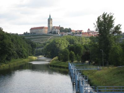 Le canal Vraňany - Hořín est une voie navigable reliant les fleuves Vltava et Elbe en Boheme centrale par un systeme d'ecluses. Cet itineraire permet aux navires de passer d'un systeme fluvial a l'autre en gerant les niveaux d'eau le long du tracé.