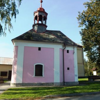 Sloup se sochou Panny Marie v Nemilanech ulice Kožušanská