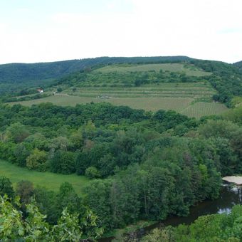 Le vignoble Šobes s'étend sur un promontoire rocheux le long de la rivière Dyje, avec des pentes orientées vers le sud à 332 mètres dans le Parc National Podyjí.