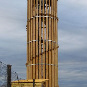Les visiteurs doivent gravir 76 marches en bois pour atteindre la plateforme d'observation non couverte située à 14.5 mètres de hauteur.