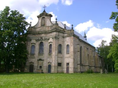 L'église de la Sainte-Trinité est une structure baroque avec un presbytère à cinq pans encadré par une sacristie et une facade occidentale monumentale aux pilastres imposants. À l'intérieur, les voutes en croisée d'ogives dominent, tandis qu'une chapelle de Lorette rectangulaire avec décoration en caissons enrichit la composition globale.