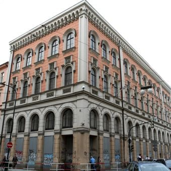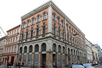 Le Palais Lanna se dresse à l'intersection des rues Hybernská et Havlíčkova, présentant des éléments architecturaux néogothiques face à la gare Masaryk.