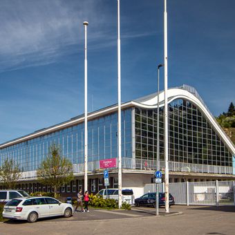 Le bâtiment a été conçu par Richard Podzemný avec une forme rappelant une grande vague, donnant au complexe son allure caractéristique. Ce trait architectural lui a valu d'être reconnu comme monument culturel.
